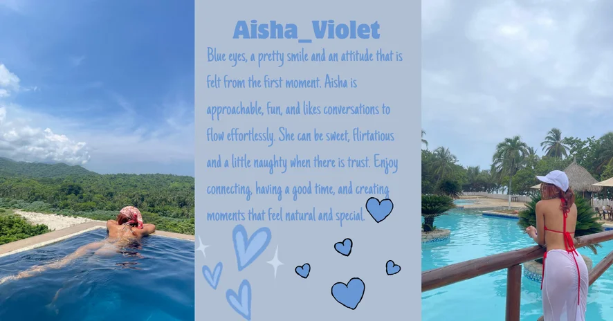 Blue eyes, a pretty smile and an attitude that is felt from the first moment. Aisha is approachable, fun, and likes conversations to flow effortlessly. She can be sweet, flirtatious and a little naughty when there is trust. Enjoy connecting, having a good time, and creating moments that feel natural and special.